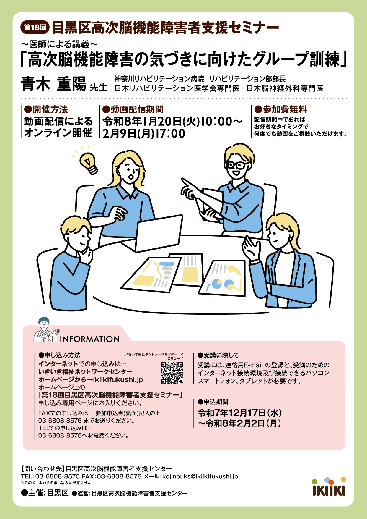 第18回目黒区高次脳機能障害者支援セミナーを開催いたします
